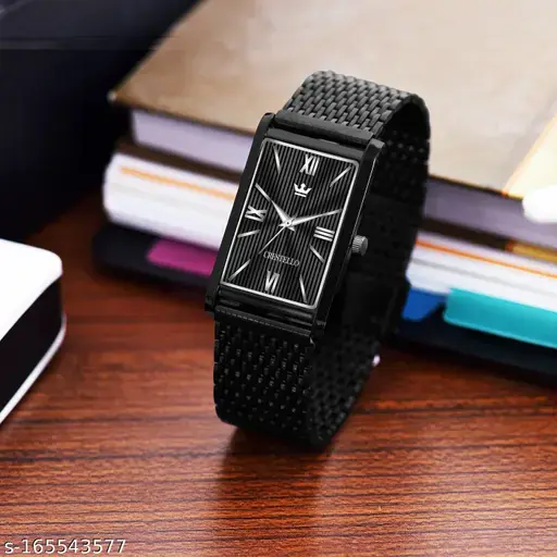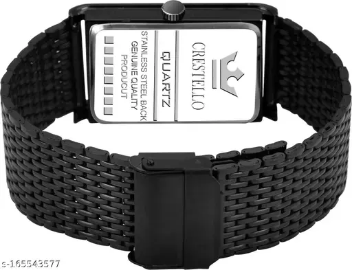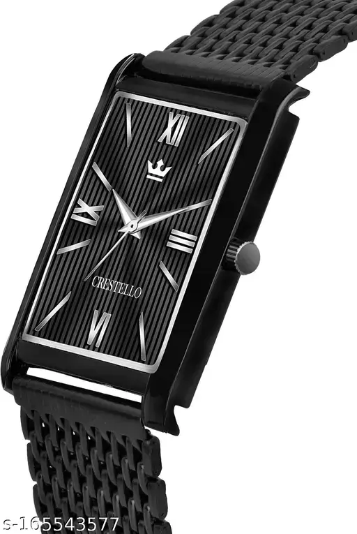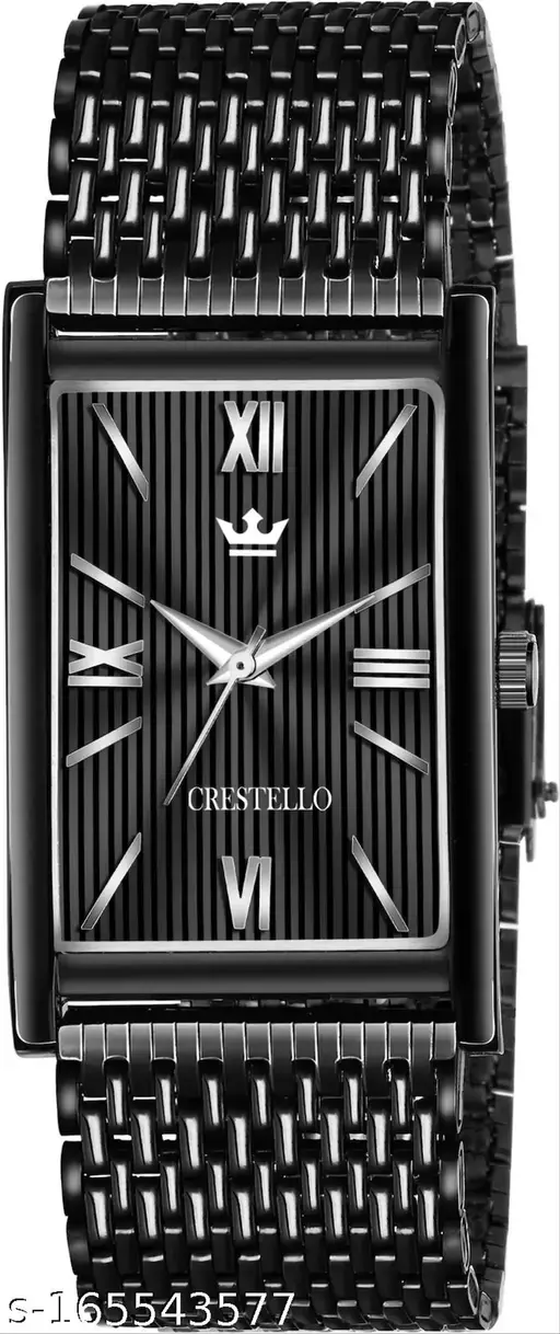 Crestello Black Dial & Black Plated Steel Chain Analog Wrist Watch for Men.