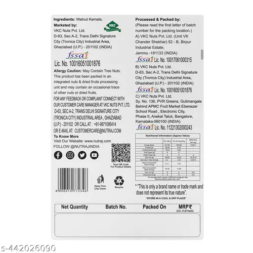 Indulge in the rich, nutty, and flavorful taste of Nutraj Walnut Kernel Brown Halves, which offers a convenient and versatile option for all cooking and baking needs! These walnut halves are sourced from premium quality walnut known for their superior taste and texture. They taste great and can be included in various culinary possibilities like salads, pasta, baked goods, and desserts. So, why wait any longer? Enjoy Nutraj Walnut Kernel Brown Halves to elevate your dishes with natural goodness, crunch, and flavour.