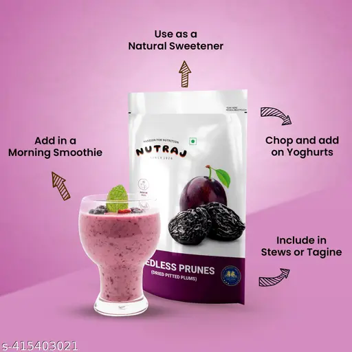 Do You wish to solidified your fitness goal by just adopting a healthy snack? Nutraj California Pitted Prunes can bring you close to your goal! These Nutraj premium quality prunes are carefully sourced from sun-drenched land of California and hygienically packed to retain their freshness for long.