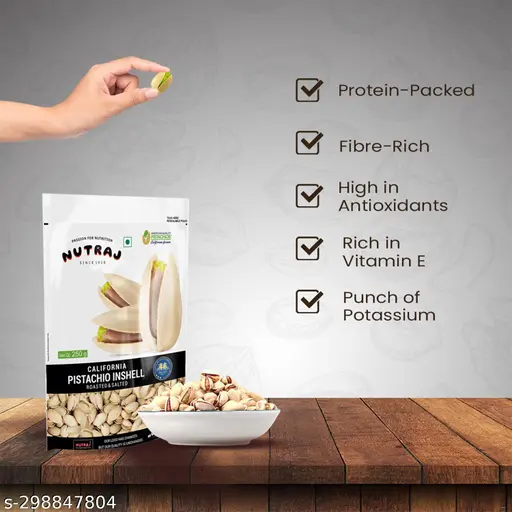 Looking for an easy-going snack that goes well with your taste buds and healthy lifestyle? Introducing Nutraj California Pistachios Inshell that are roasted and salted to perfection and bring instant joy to your taste and health buds. These crunchy little treats are loaded with protein, fibre, potassium, and all things healthy, making them the ultimate snack for anyone looking to upgrade their nutritional chart. With a flavour that's both crunchy and delicious, Nutraj California Pistachios are your perfect munching partner anytime and every time of the day and can be easily added to your daily recipes. Wait no longer, shop today!