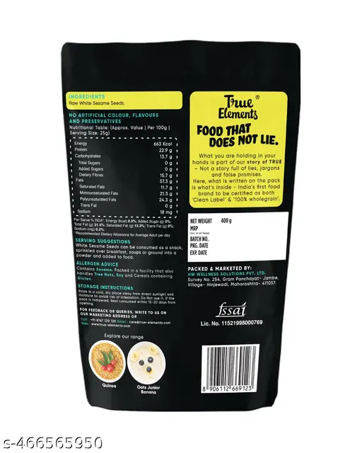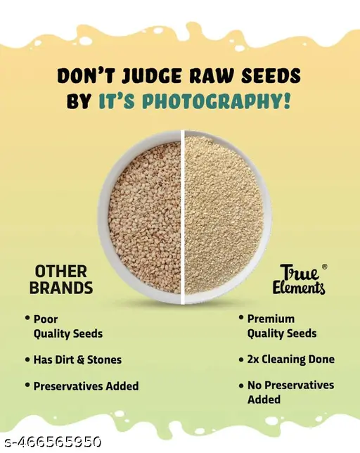100% NATURAL & CLEAN : True Elements Raw White Sesame Seeds are 100% natural and premium. White sesame seeds are cleaned both Manually & Mechanically.